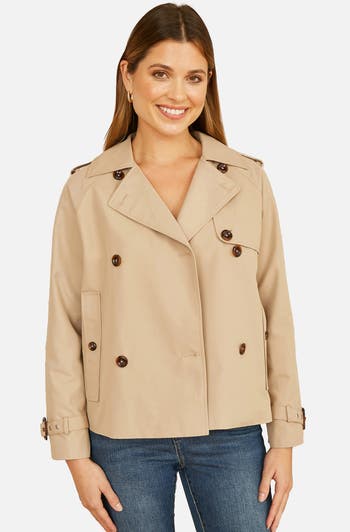 Reimagining the classic is what we do and this cute little cropped trench is the perfect example. With a double breasted button design, oversized pockets and a gorgeous check lining - This will see you through the spring months perfectly. For work or weekends, we love this styled with wide neck trousers and a jumper. The sleeves are cuffed with a belted design and it has that classic trench feel with details on the shoulder.