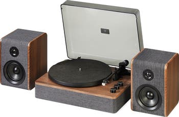 Additional features: This easy-to-use turntable features an automatic belt-drive and plays both 33 1/3 and 45 RPM records. Even better, the it comes with matching stereo speakers, so it’s ready to go right out of the box.