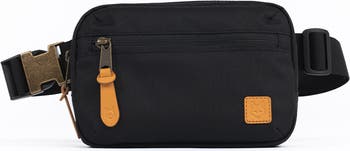 - Sustainable Product YKK zippers – Bluesign® certified 100% recycled polyester 1 exterior front zipper pocket for sunglasses and keys 1 exterior main body zipper with internal mesh organizer Adjustable body strap for multiple carry options Sleek antique brass buckle closure Vegan leather zipper pullers Reinforced seams and straps for durability Hand Wash - warm water Air Dry