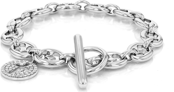Diamond Cross Charm on Puffy Heart Mariner Link Chain Bracelet