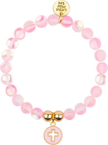 - Material: 14K Gold Plated, Crystal Moonstone Beads, Enamel Charm Size: 6" Prepackaged on a Card and Ready to Gift Adult supervision strongly recommended; jewelry presents choking hazard and should be removed when infant or small child is unattended Keep jewelry away from water and chemicals; remove during physical activities; store separately in a soft pouch.