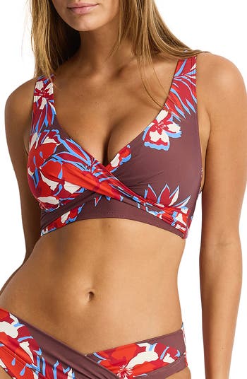 A crisscross front shapes your silhouette when you lounge poolside in this wireless bikini top made with convertible straps and side boning for support.