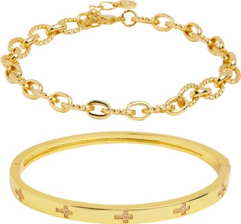A cross-studded bangle and a twisted chain create a perfectly structured stack that works all week.