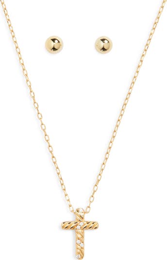 Cross Pendant & Stud Earrings Set