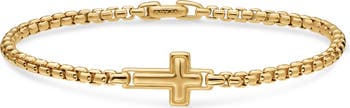 An integrated cross station is the focal point of this handcrafted box-chain bracelet cast in 18-karat gold.
