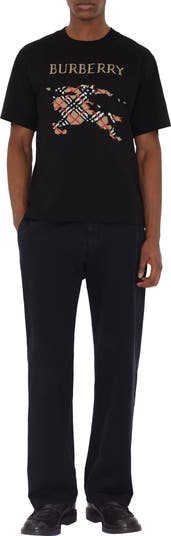 A crew-neck T-shirt made from cotton jersey. Cut to a relaxed fit, the style is cross-stitched with our logo and Equestrian Knight Design in Burberry Check.||Rib-knit trims