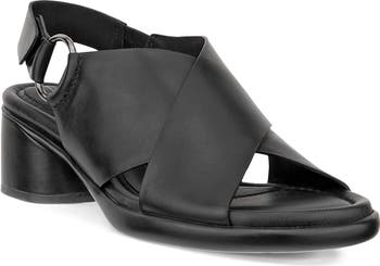 Style and comfort share top billing on this cross strap leather sandal set on a low, walkable heel and featuring an adjustable slingback strap.