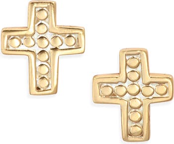 Anna Beck's signature hand-placed dots texture these glowing cross earrings handcrafted from luminous precious metal.
