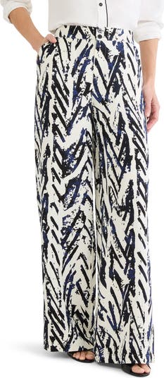 A bold crosshatch print brings graphic impact to these high-waist linen-blend pants designed with a wide waistband for a flattering fit. The tailored silhouette balances structure with effortless ease for confident, everyday attitude.