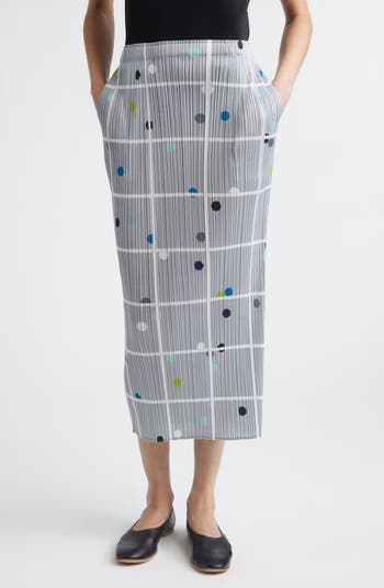 Softly structured with Issey Miyake’s signature garment-pleating technique, this wrinkle-resistant, travel-friendly midi skirt blurs the lines between fashion and art with an abstract cityscape print. Inspired by passing cars and people reflected in building windows, the pattern makes this piece feel alive with movement.