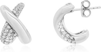 Crossover CZ C-Hoop Earrings