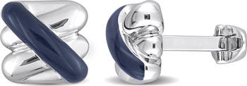 These basic crossover design enamel cufflinks are crafted in luminous sterling silver. These stylish cufflinks showcase one band of the crossover design coated with blue enamel. Enhanced with a polished finish, these contemporary cufflinks can be coordinated flawlessly with a navy blue tuxedo. Look dapper and stand out from the crowd with these minimalistic cufflinks.