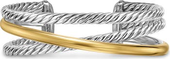 Crossover Three-Row Cuff Bracelet in Sterling Silver with 14K Yellow Gold, 20mm