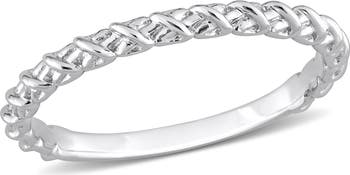 This unique single-row twisted crossover ring is crafted in lustrous 14k white gold. Enhanced with a milgrain finish, this stylish ring is a flawless accessory for an effortless look.