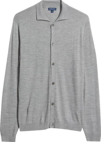 Knit from fine merino wool and topped with a polished cutaway collar, this lightweight cardigan blurs the line between first and second layers.