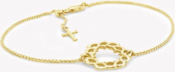 18k generously gold-plated sterling silver crown of thorns bracelet set on adjustable slider box chain. Each unique piece in The Crown of Thorns Collection symbolizes the singular sacred act of the heavenly King whose sacrifice on the cross bestowed a timeless covenant of hope and holiness upon humanity. The elegant craftsmanship offers jewelry that’s not only captivating in appearance but rich in spiritual sentiment.