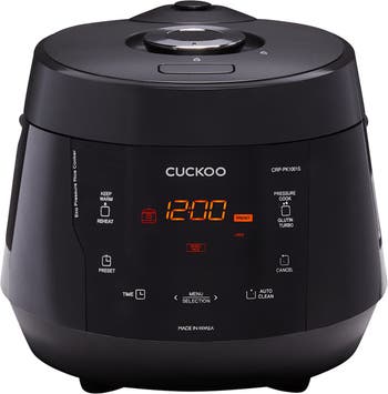 Enjoy Gourmet Creations with CUCKOO's CRP-PK1001S 10-Cup Heating Pressure Rice Cooker! Consistently delicious rice, optimally reheated leftovers, ready-made meals with the press of a button, and professional grade quality - with CUCKOO's CRP-PK1001S 10-Cup Heating Pressure Rice Cooker, all of this and more will be at your disposal. Key Features: Multi-Functional Cooking: This multi-functional cooker has 13 fully customizable menu options that allow a wide variety of meals, a reheat option for leftovers, and a keep-warm function to ensure none of your food is ever overcooked or burnt while serving. 20-Cup Cooked Capacity: Perfect for large family gatherings and housewarming dinners, this rice cooker offers a generous 20-cup (cooked) capacity. Smart Automated Technology: With Fuzzy Logic Technology, experiment with automated features such as the Preset Timer, which lets you place ingredients in the inner pot in the morning and come home to freshly made rice - no effort and no stress! High-Quality Construction: Featuring a durable, stainless steel inner pot with black shine nonstick coating, both ensure efficiency, optimal temperature, and heat distribution throughout the cooking process. Hassle-Free Cleaning: When cooking is completed, initiate the Auto-Clean function to automatically steam the interior of the rice cooker for a deep, quick clean. Elevate your culinary experience with CUCKOO's CRP-PK1001S 10-Cup Heating Pressure Rice Cooker, where innovation meets gourmet excellence!