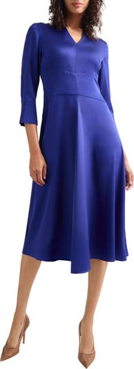 This crêpe de Chine midi dress is rendered in a timeless silhouette featuring a flared skirt that moves with you.