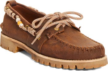 The Italian label reworks a maritime staple in this bead-embellished loafer handmade from waxed suede and set upon a chunky lugged sole.
