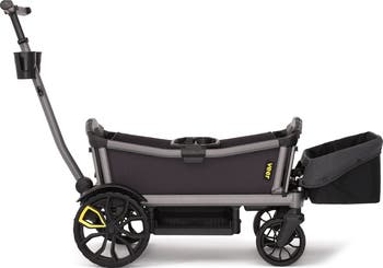 Why parents will love it: A performance handle grip and a telescoping handle let you push or pull the wagon easily. The robotically welded aluminum frame, four three-point harnesses and aggressive front suspension provide peace of mind as you cruise. Shock-absorbing wheels keep the ride steady even on rugged terrain, while the sturdy design lets you easily hose down the cruiser after muddy adventures. And the collapsible design allows you to quickly fold it up and store it in the trunk when you're done for the day.