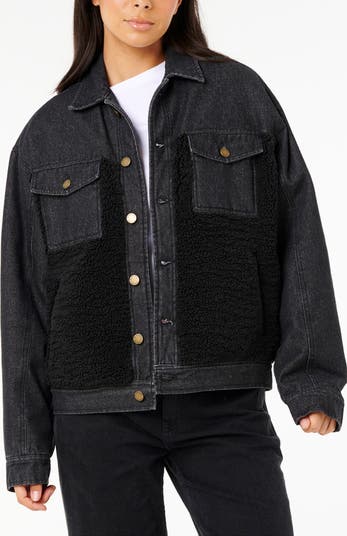 Cozy high-pile fleece trim adds to the vintage vibes of this versatile denim jacket.