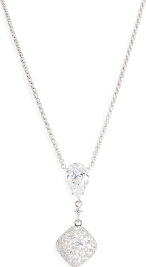 Add elegant sparkle to your look with this hand-polished necklace showcasing a cushion-shaped pendant bedazzled by round cubic zirconia and topped by a teardrop crystal.