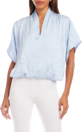Made from softly crushed satin, this drapey V-neck top is designed with an on-trend bubble hem that creates chic volume.