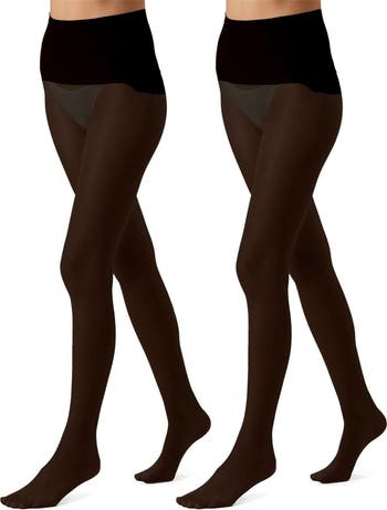 A high waist tops these comfortable tights featuring a seamless waistband and 12-denier legs that are delightfully sheer.