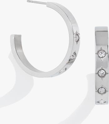 Get a glam refresh when you add the Crystal Accent Hoop Earrings to your everyday look and feel the confidence boost a great pair of earrings gives you! These shiny silver or gold hoops feature crystal-centered star details throughout.