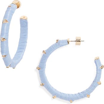 Nordstrom Crystal Accent Raffia Wrapped Hoop Earrings, Main, color, Light Blue- Clear- Gold