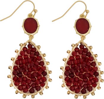Wire-wrapped crystals fill the large teardrop silhouette of these light-catching drop earrings plated in 14-karat gold.