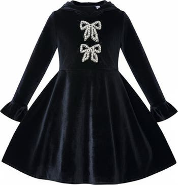 Let her light up the room in this dazzling black velvet dress, made for the most magical moments of the season.