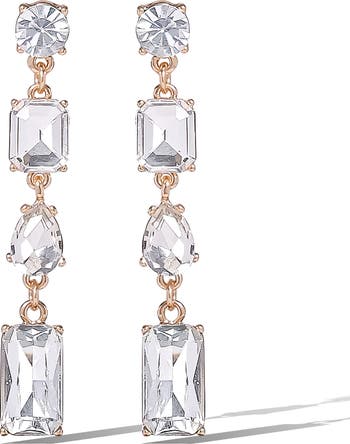 Dazzling and dramatic, these cascading earrings shimmer with oversized crystal accents.