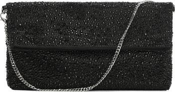 Glittering crystals light up this evening-ready handbag styled with a removable chain strap for easy wear.
