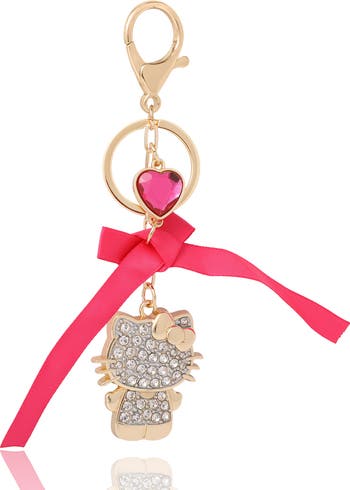 Add sparkle to your everyday accessories with this Hello Kitty keychain featuring crystal embellishments, a hot pink ribbon, and a heart charm.