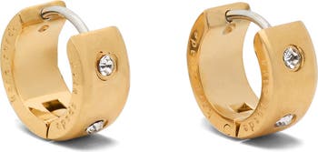Add rich sparkle to your look with these chunky huggies set with shimmering faceted crystals.