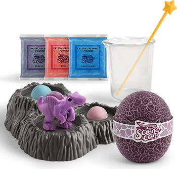 SCIENCE CAN: CRYSTAL DINOSAUR GROWING KIT - EDAPHOSAURUS - Learn chemistry with this hands-on crystal growing experiment kit. Follow the simple steps to grow crystals on your dinosaurs and rocks, making your own stunning dinosaur crystal garden. The crystals will grow in 3-7 days, the higher the temperature of the initial water used the quicker the crystals will grow. This kit includes 3 different colors of crystal powder, 2-crystal growing rocks, 1-dinosaur, 1-egg, a rock garden stand, and a journal to note your findings as you watch your crystals grow. It's the perfect gift for any budding scientist! Combining education with entertainment. Childlike theme: Adding a dinosaur theme to chemistry experiments to make children fall in love with chemistry. Dinosaur experiment: Plant dinosaur crystals and wait for the crystals to grow. Observation diary: it is both an instruction manual and a record sheet, witnessing every moment of crystal growth. THE HAPE PROMISE: Hape toys stimulate children through every stage of development and help nurture and develop their natural abilities. All Hape products sold in North America meet or exceed all applicable safety standards. Our toys are created to inspire play, learning, and exploration of the world we live in; through responsible business practices, we aspire to leave the world in a better condition than when we received it.
