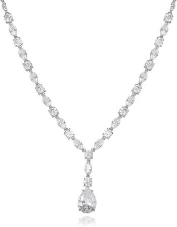 Add a touch of timeless elegance to your look with the Jessica Simpson Crystal Drop Pendant Necklace. Featuring a delicate silver-tone chain adorned with shimmering crystals, this necklace boasts a stunning drop pendant with a radiant crystal centerpiece. Its sophisticated design makes it perfect for special occasions, weddings, or enhancing your everyday style. The adjustable chain ensures a customized fit, while the lobster clasp closure provides secure wear. Elevate your jewelry collection with this dazzling piece from Jessica Simpson.