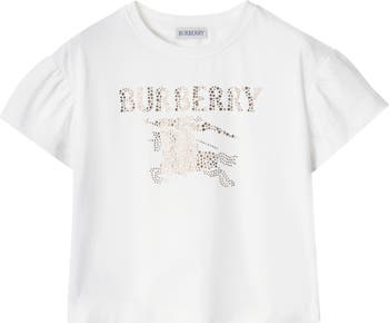 A crew-neck T-shirt in cotton jersey with gathered cap sleeves. The style is crystal-embellished with our logo and Equestrian Knight Design.||Rib-knit neckline