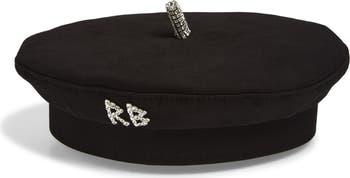 An abstract take on the label's monogram done in sparkling crystals brings glam appeal to this classic beret made of cotton twill.