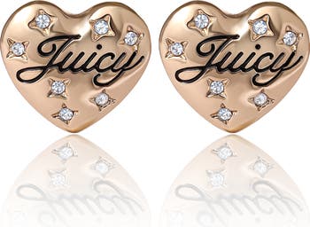 - Signature Juicy Couture Style: Features the iconic Juicy logo elegantly engraved on heart-shaped studs.