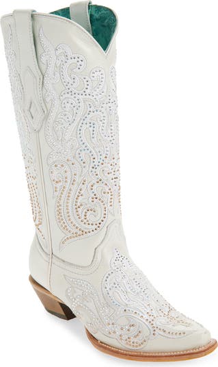 Sparkling crystal accents and intricate topstitching bring standout western style to a snip-toe cowboy boot that's sure to turn heads.