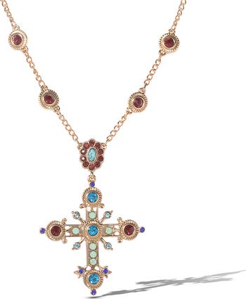 Crystal Gold-Tone Cross Pendant Necklace