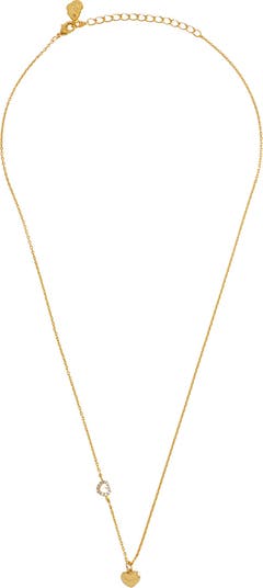 A sparkling crystal heart complements a smooth goldtone charm on this refined pendant necklace designed for subtle contrast and shine.