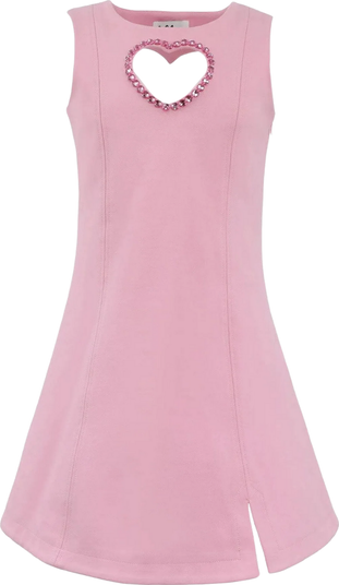 Elegant dress in a lovely pink hue featuring a charming crystal heart cutout design. Ideal for parties, outings, and making a stylish statement.