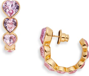 Color and sparkle collide in these timelessly elegant hoop earrings featuring heart-shaped crystals in a rosy hue.