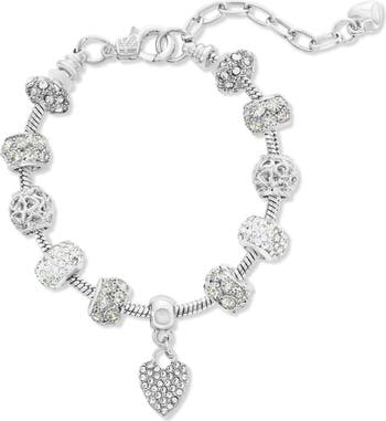 Elevate your style with this Crystal Heart Charm Bracelet, plated in lustrous 18K white gold over durable brass. Featuring a sparkling white crystal and a charming hanging heart detail, this 7-inch bracelet extends up to 8.5 inches for a perfect fit. The sturdy lobster claw clasp ensures secure wear, while the hypoallergenic design offers comfort for sensitive skin. This elegant accessory effortlessly adds a touch of sophistication to any outfit.