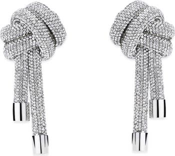 Megawatt glamour is Area's guiding light, which these bold, bedazzling earrings follow flawlessly with knotted crystal tendrils that illuminate your lobes like a disco ball.