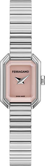 An elegant piece of jewelry that also keeps incredibly accurate time, this petite bracelet watch features an elongated octagonal case with a beveled enamel dial.