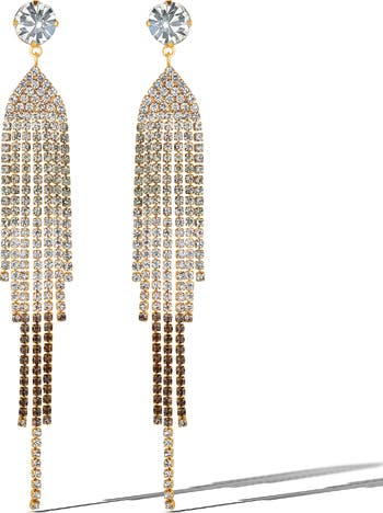 Crystal Rhinestone Fringe Dangle Long Statement Earrings